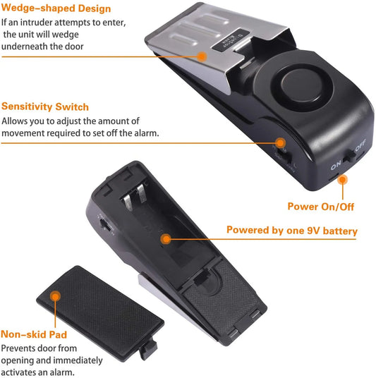 Wedge Door Stop Alarm with 120 Db Siren – Security Door Stopper with Adjustable Sensitivity for Home, Travel, Office, Dorm - 4 Pcs