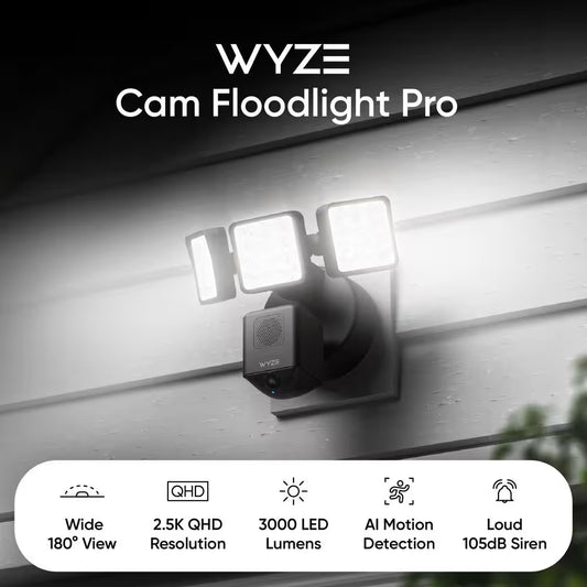 Wired Outdoor Wi-Fi Floodlight Pro Home Security Camera with 2K Resolution and App Control, Works with Alexa and Google